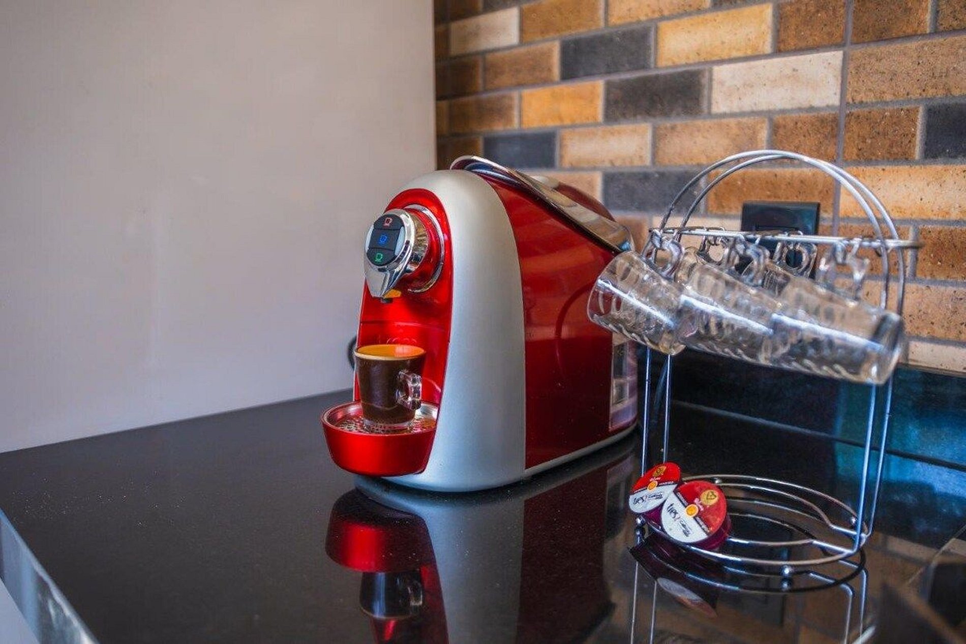 temos também um sistema de self check-in e uma garagem para 3 a 4 carros ( dependendo do tamanho)